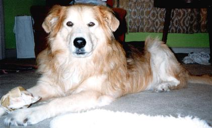 A husky/Golden mix, and one of the best dogs on earth! Suffered a stroke at 13yrs